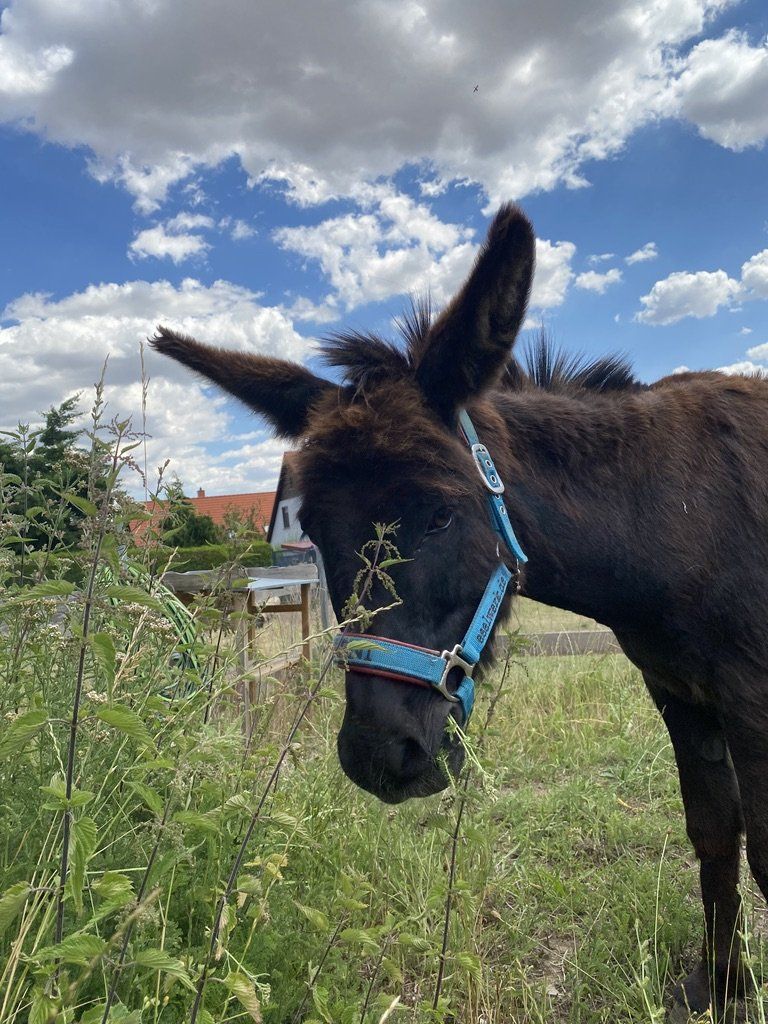 Sie ist unser Jüngste und gerade am Ende ihrer Pubertät!Sie ist im August 2017 bei uns geboren und die Tochter von Liese. Sehr neugierig, überaus temperamentvoll, frech und lauffreudig. Unser Herausfordereresel!
