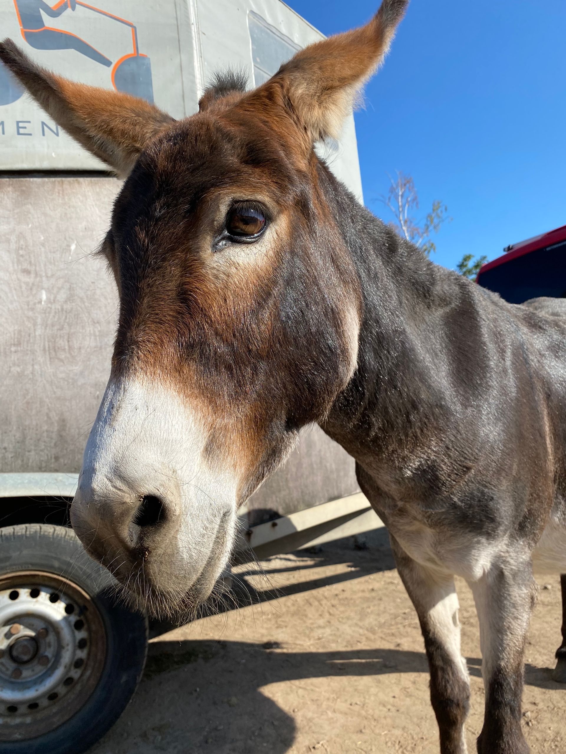 Seine Vorbesitzer suchten schon länger einen tollen, neuen Platz für ihn, da sie sich aus alters- und gesundheitlichen Gründen nicht mehr gut kümmern konnten. Unser Teddybär-Esel verzaubert alle Kuschelbedürftigen.Er ist ein ganz toller Wanderbegleiter und unser bester Kutschesel!